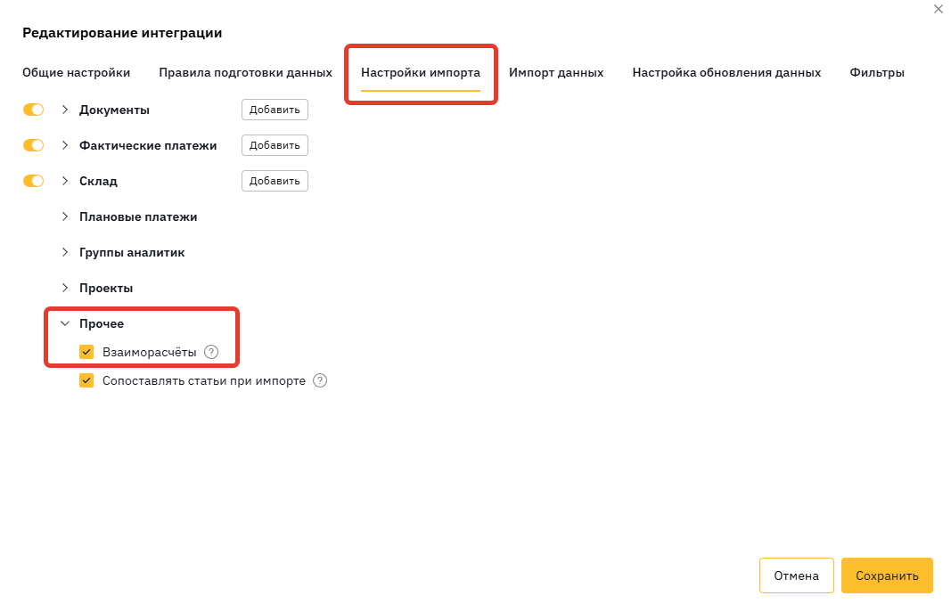 Данный раздел формируется из интеграции с 1С, если включены «Взаиморасчеты».