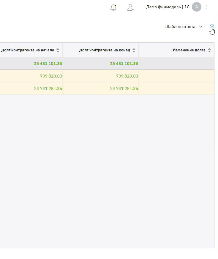 - столбцы (долг на начало и на конец, изменение и оплаты за период)