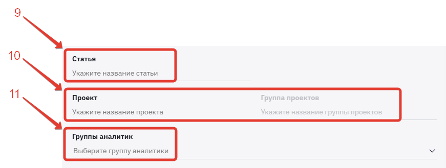 (9) Статья - это статья в отчёте «Движение денег», по которой будет платёж.