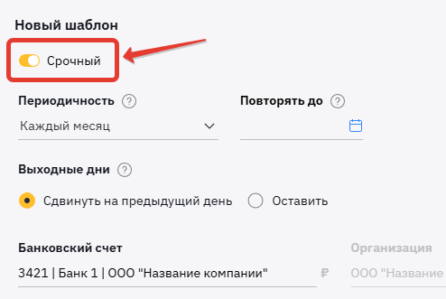 💡 Мы рекомендуем ставить признак «Срочный» только для очень важных платежей, остальные станут срочными, если будут пропущены.