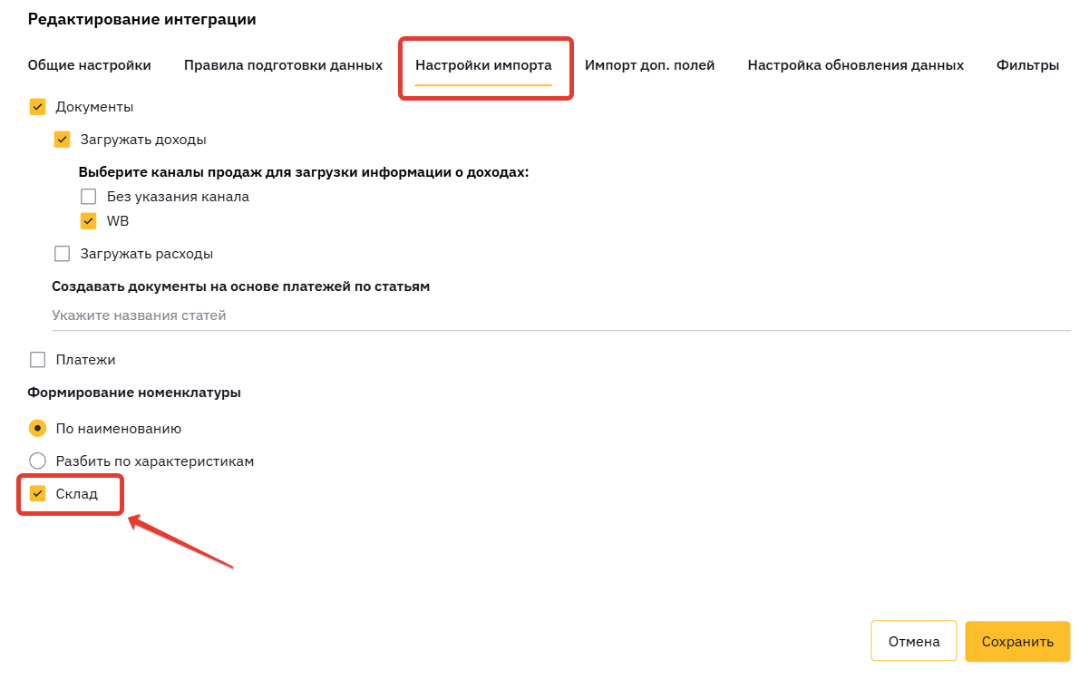 📝 Баланс | Настройка импорта склада из «Мой склад» (ссылка)
