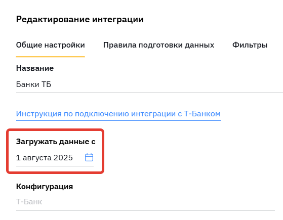 ⚠️ После подключения выписка банка загрузится с даты, указанной в настройках интеграции.