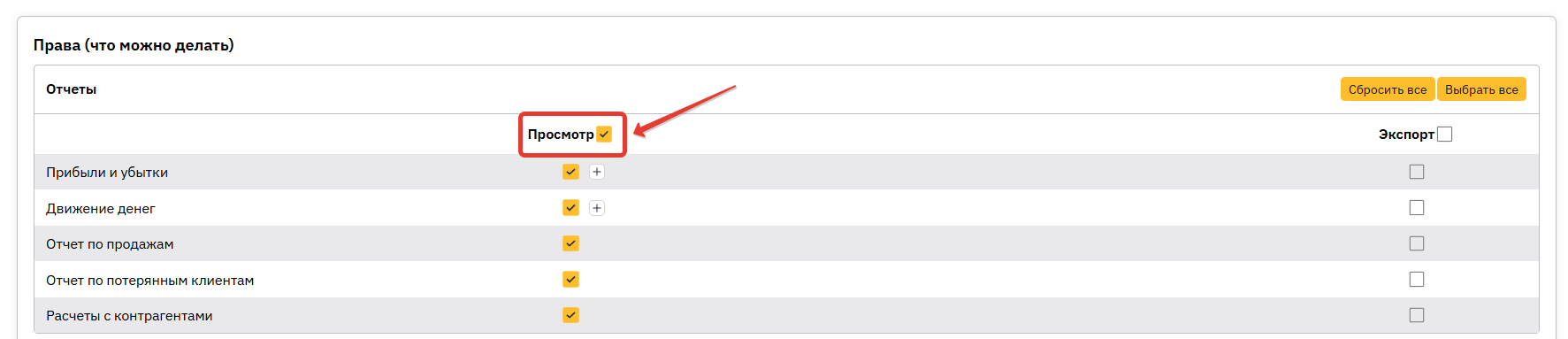 Чтобы дать доступ к проектам, организациям, счетам и группам аналитик, нажмите «Добавить» и включите чекбоксы: