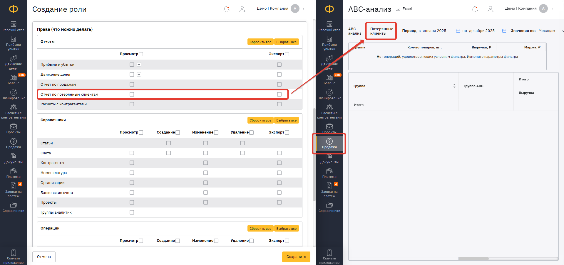 Это доступ к разделу «Продажи» → «Потерянные клиенты».