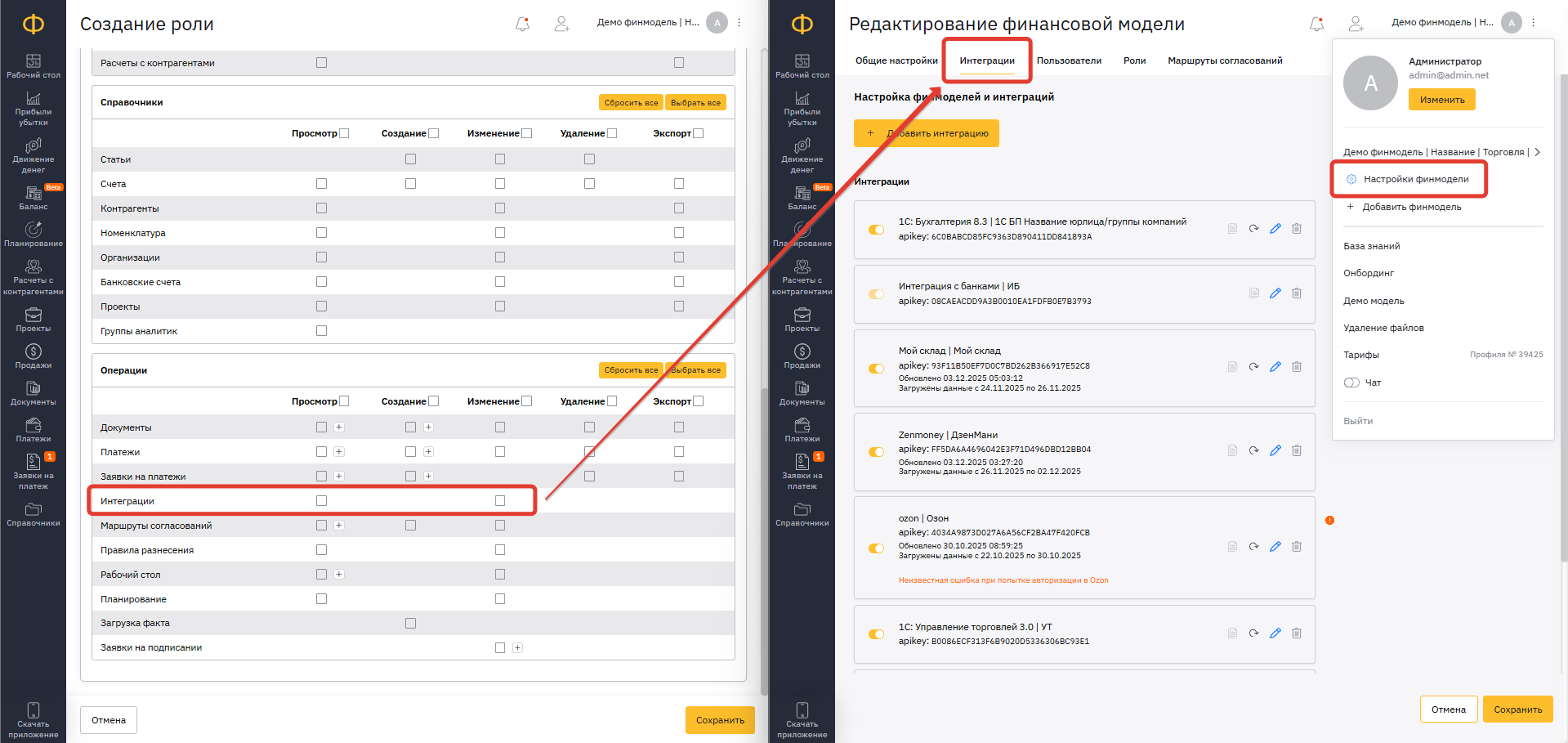 🔸 Администратор имеет полный доступ к информации и всем действиям внутри кабинета (во всех финансовых моделях, если их в кабинете несколько).